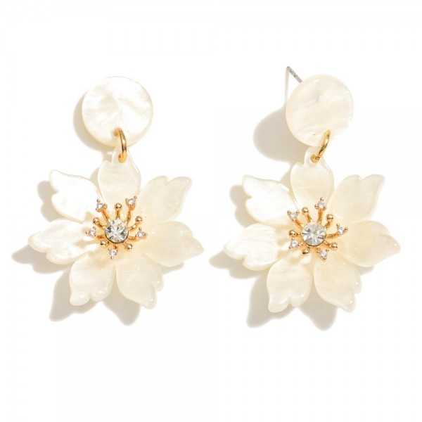 Acetate Flower Post Drop Earrings With Rhinestone Accents