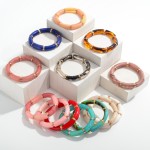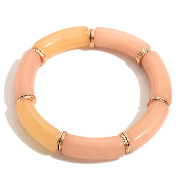 Acrylic Tube Bead Stretch Bracelet With Gold Beaded Accents