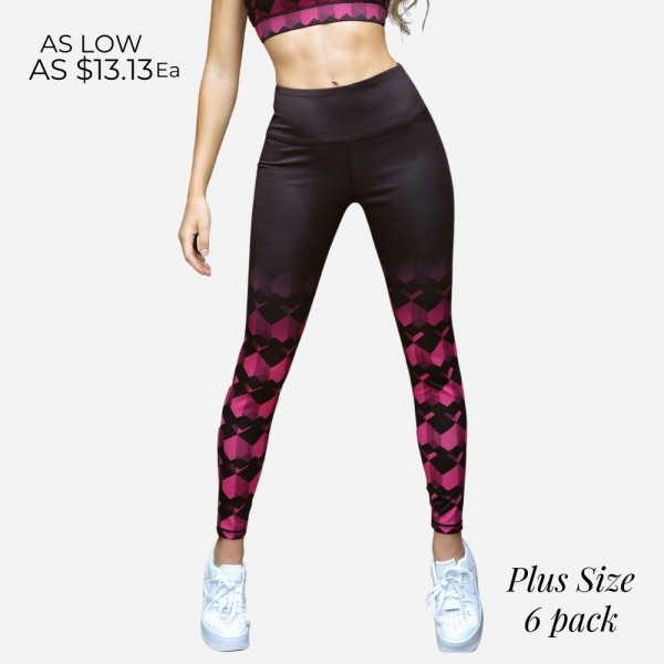 Active Leggings Featuring Patterned Bright Pink Diamonds in an Ombre Effect Down the Bodice. (6 Pack)