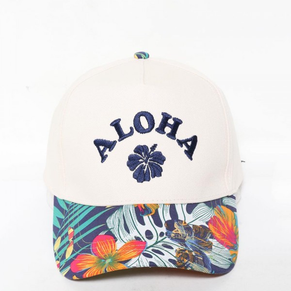 "ALOHA" Embroidered Baseball Cap With Floral Print Bill
