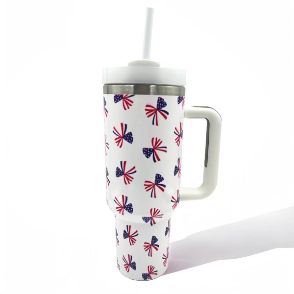 Americana Bow Printed 40oz Double Wall Stainless Steel Vacuum Tumbler With Handle