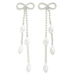 Ball Chain Bow Post Drop Earrings With Linked Pearl Details