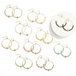 Beaded Drop Hoop Earrings Featuring Metal Tone Bubble Criss Cross Detail