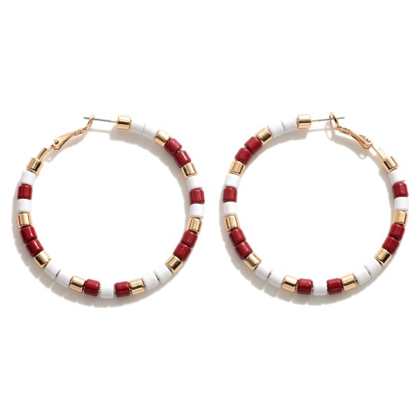 View more Red, Hoop Earrings, Beaded Earrings, Game Day