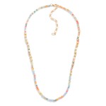 Beaded Necklace Featuring Faceted Beads & Gold Tone Square Beads