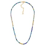 Beaded Necklace Featuring Faceted Beads & Gold Tone Square Beads