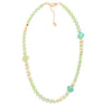 Beaded Necklace Featuring Faceted Beads, Metal Tones, & Stone Clover Stations