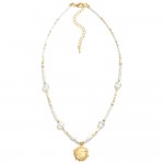 Beaded Necklace Featuring Glass Crystal Bead Stations & Metal Tone Sun Pendant