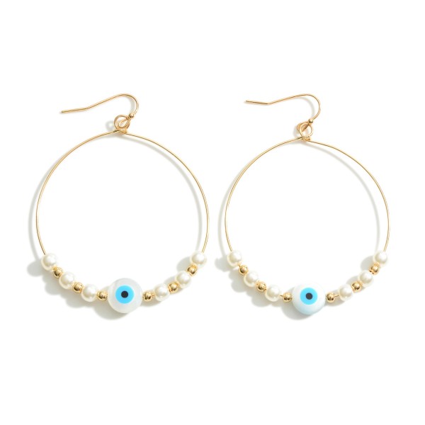 Beaded Pearl Drop Earrings Featuring Evil Eye Accents.