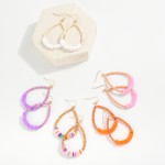 Beaded Teardrop Drop Earrings Featuring Wood and Puka Shell Beads