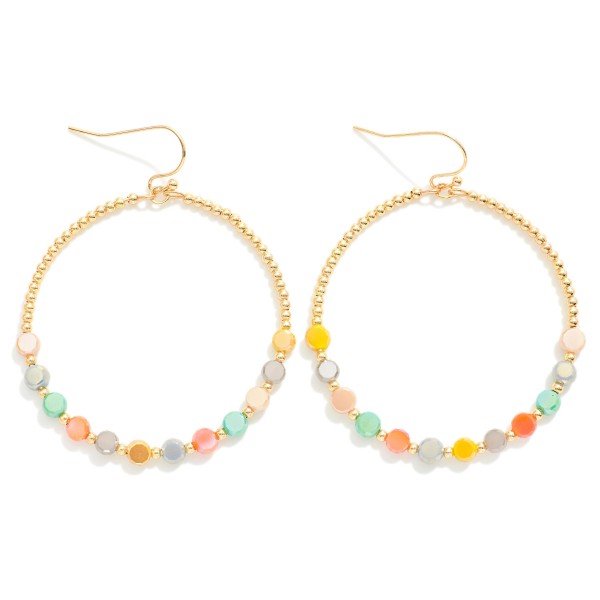 Beaded Wire Hoop Earrings Featuring Dainty Gold Tone Beads and Bi-Faced Faceted Glass Beads