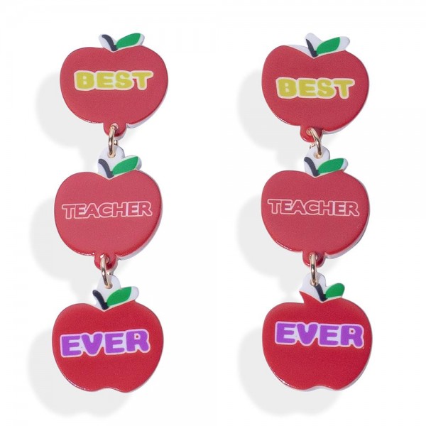 'BEST TEACHER EVER' Linked Apple Drop Earrings