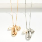 Box Chain Link Necklace Featuring Shell & Pearl Pendant