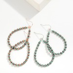 Brushed Metal Tone Beaded Teardrop Drop Earrings