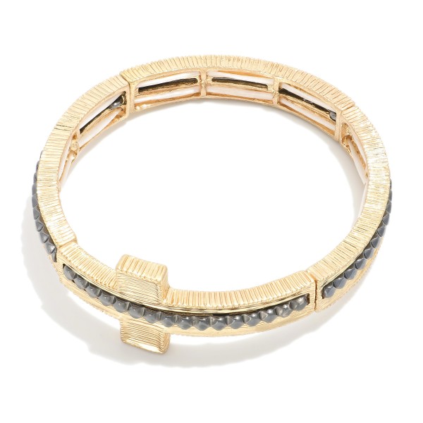 Brushed Metal Stretch Cross Bracelets Featuring Bead Details