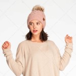 Chunky Braid Cable Pattern Beanie Featuring Natural Faux Fur Pom.