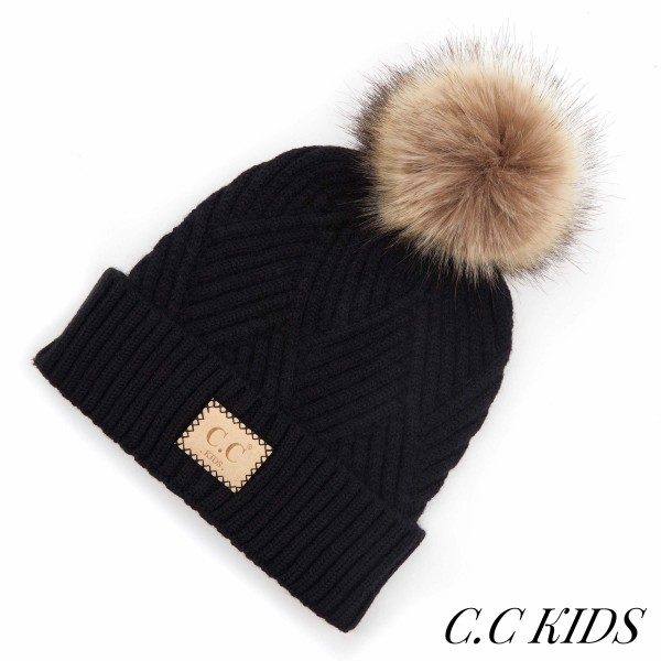 Diagonal Stripes Criss-Cross Pattern Beanie With Pom for Kids