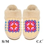 Multi Color Crochet Granny Square Slippers With Faux Fur Cuff