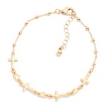 Chain Link Anklet Featuring East West Cross & Heart Stations