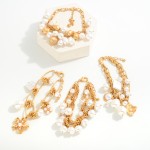 Chain Link Bracelet Featuring Pearl and Metal Bead Charms