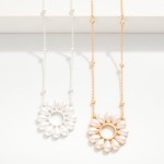 Chain Link Necklace Featuring Flower Pendant With Pearl Petals