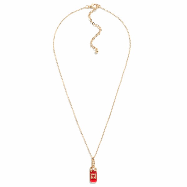 Chain Link Necklace Featuring Heart Champagne Bottle Pendant