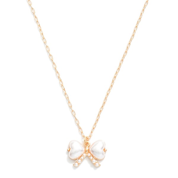 Chain Link Necklace Featuring Pearl Heart Bow Pendant