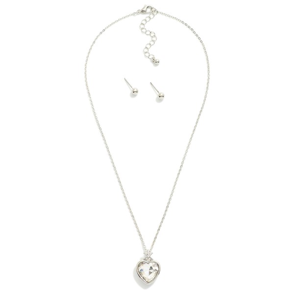 Chain Link Necklace Featuring Rhinestone Heart Pendant