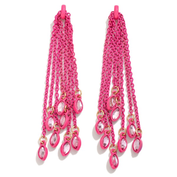 View more Long Earrings, Pink, Rhinestone Earrings, Chain Link Jewelry
