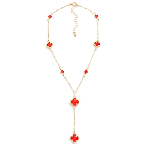 Chain Link Y Necklace Featuring Glass Crystal Clover Accents