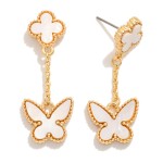 Chain Linked Acetate Clover & Butterfly Post Drop Earrings