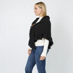 Checker Knit Scarf Wrap With Ruffled Edges & Vegan Leather Buckle Detail