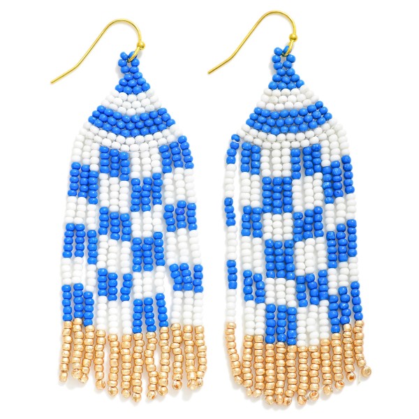 Checkered Seed Bead Tassel Game Day Drop Earrings