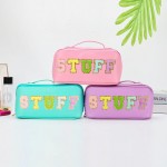 Chenille Patch Vegan Leather Travel Makeup Bag