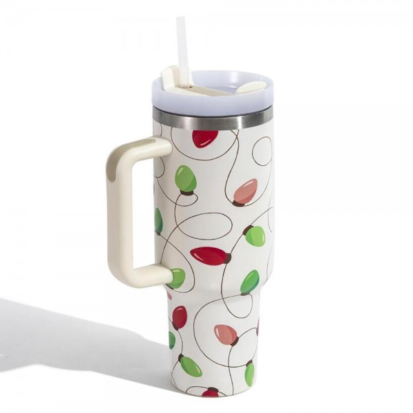 Christmas Theme Printed 40oz Double Wall Stainless Steel Vacuum Tumbler With Handle
