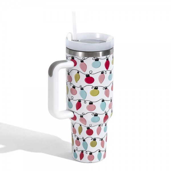Christmas Theme Printed 40oz Double Wall Stainless Steel Vacuum Tumbler With Handle