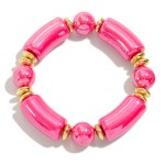 Chunky Abalone Tube and Circular Bead Stretch Bracelet With Gold Tone Accents