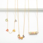 Circle - Triangle - Star - Umbrella Cube Bead Gold Tone Necklace