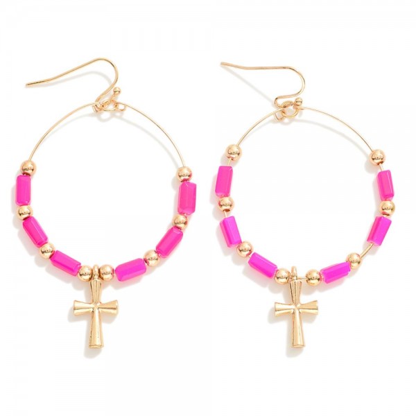 Circular Beaded Drop Earring With Cross Detail