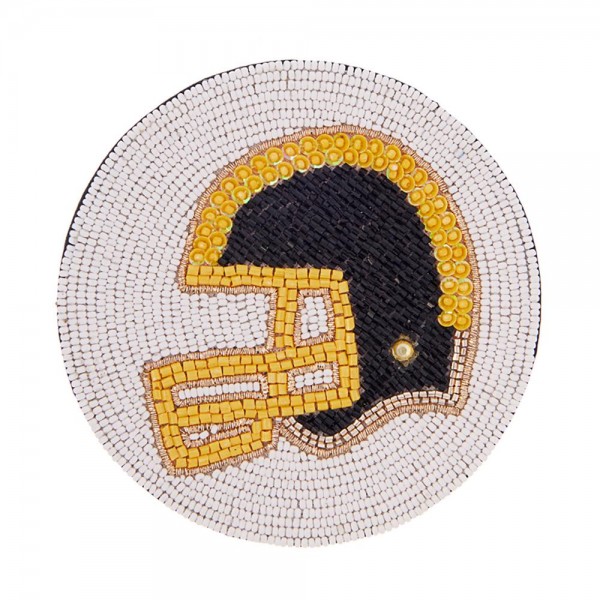Circular Seed Beaded & Sequin Football Helmet Coaster