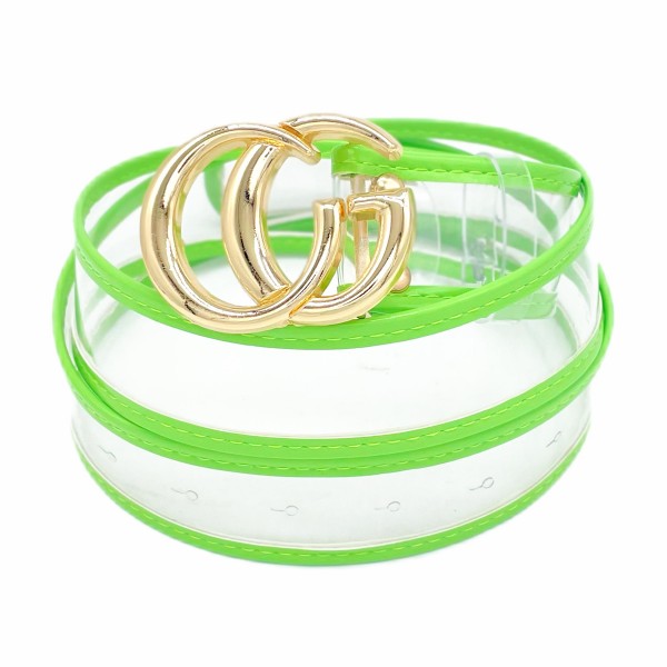 Clear Belt With Leather Hemlines And Gold Interlocking Buckle