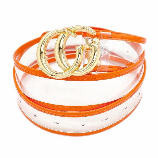 Clear Belt With Leather Hemlines And Gold Interlocking Buckle