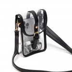 Clear Cross Body Bag With Leather Trim Featuring Snap Latch Buckle Closure