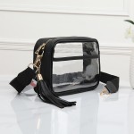 Clear PU Cross Body Bag With Leather Walls and Trim Featuring Detachable Leather Tassel