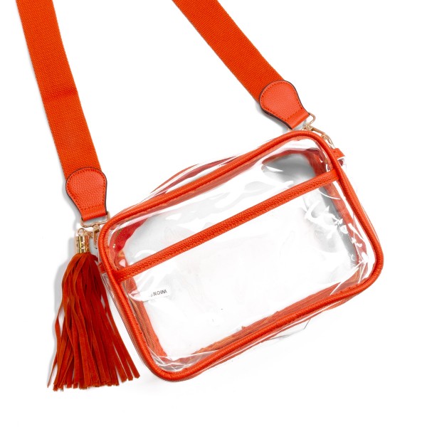 Clear PU Handbag With Matching Strap and Leather Hemlines With Matching Tassel Accent