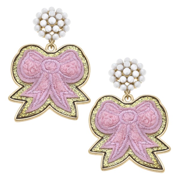 Cluster Pearl And Glitter Bow Patch Drop Earrings
