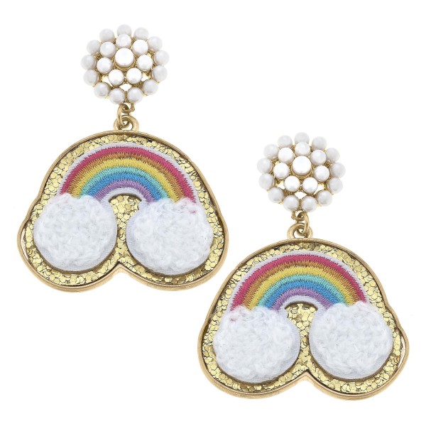 Cluster Pearl And Rainbow Patch Drop Earrings