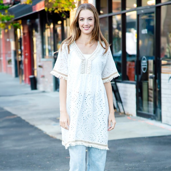 COMFYLUXE Eyelet Swimsuit Coverup With Fringe Details