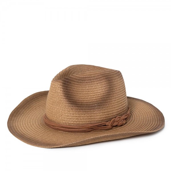 Convertible Tea Stained Cowboy Panama Hat With Layered Suede Hat Band