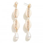 Cowrie Shell Drop Earrings With Rhinestone & Pearl Accents